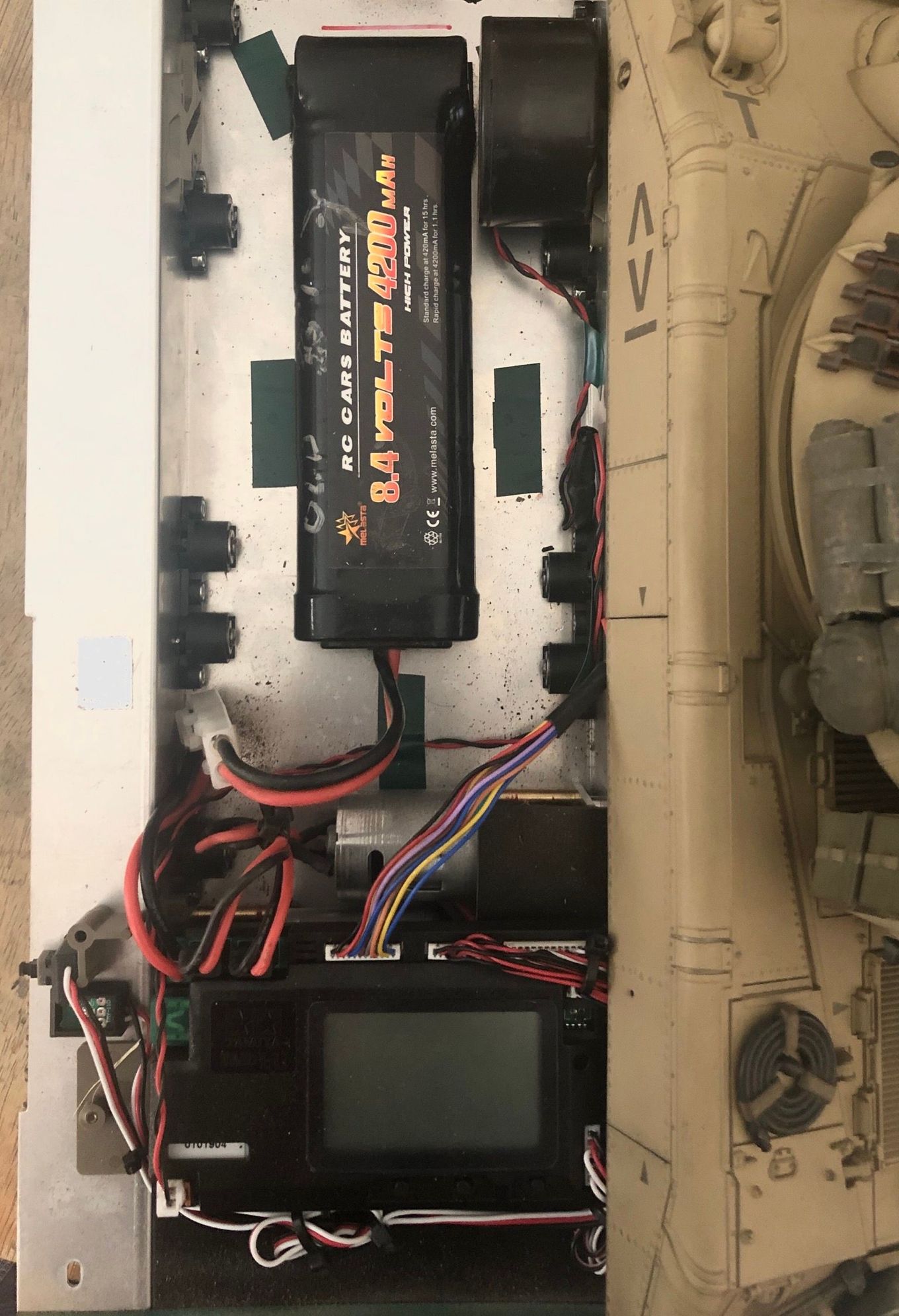 Battery and speakers position in lower hul.